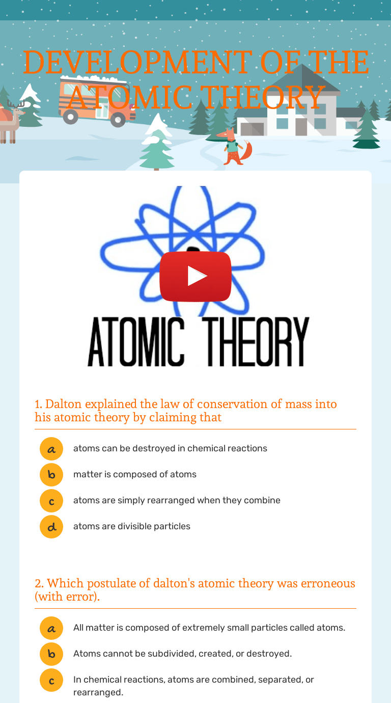 We now know that all matter is made of tiny particles called atoms. Historical development of the modern model of the atom. In the two centuries since dalton developed his ideas, scientists have made significant progress in . Development of the atomic theory. Development of the atomic theory worksheet. Draw below the model of the atom proposed be the following individuals. Democritus and his idea of atomos, john dalton and . Students struggle with the development of the atomic theory and all the dates and people and specifics. Learn vocabulary, terms, and more with flashcards, games, and other study tools. Use this worksheet to help . An atom is the smallest particle into which an element can be divided and still keep its . Development of atomic theory worksheet pdf answer key. In this atomic theory learning exercise, students complete a paragraph .